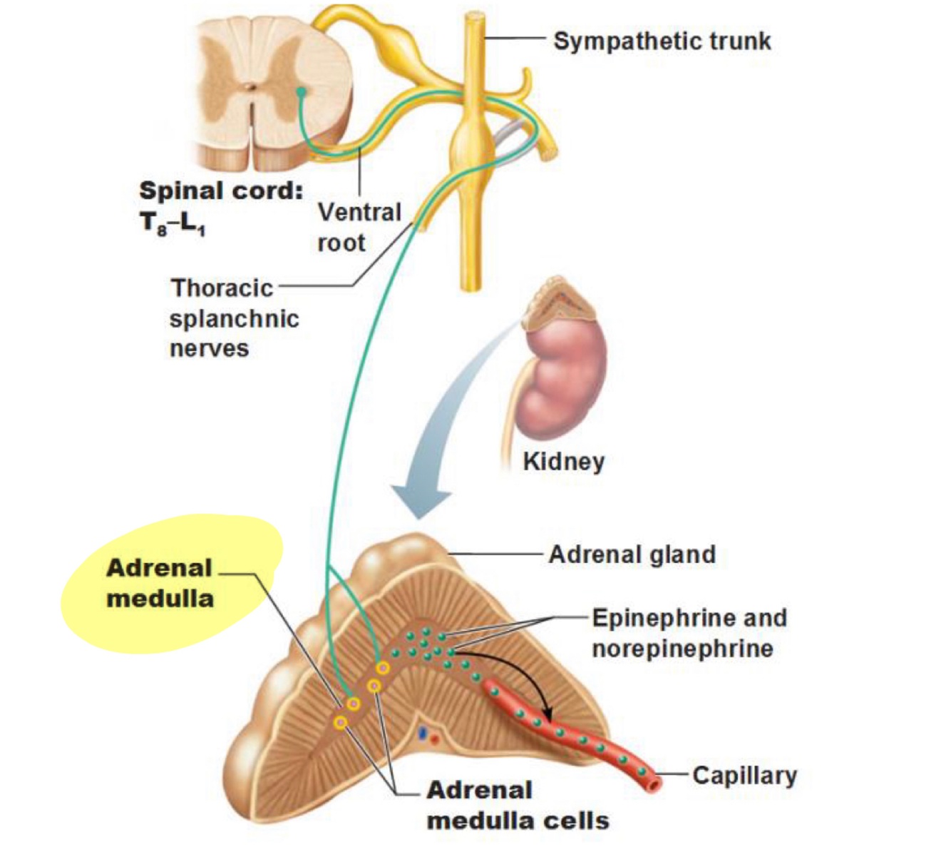 2- Adrenal medulla is innervated DIRECTLY from PREganglionic fibers