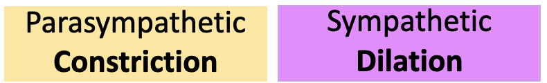 What occurs to the pupil under parasympathetic and sympathetic control?