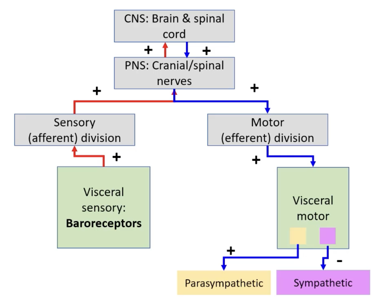 Increased parasympathetic NS action and decreased sympathetic NS action
