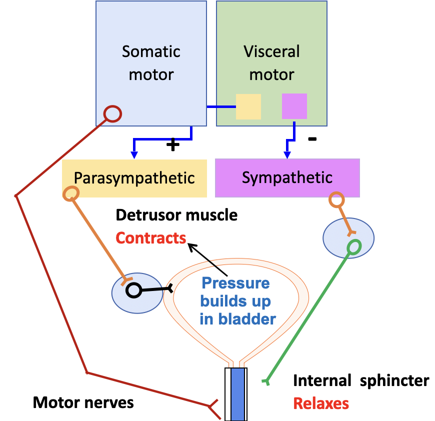 -Therefore at rest(para is dominant) the bladder will squeeze and the internal sphincter will stay shut, preventing unwanted urination