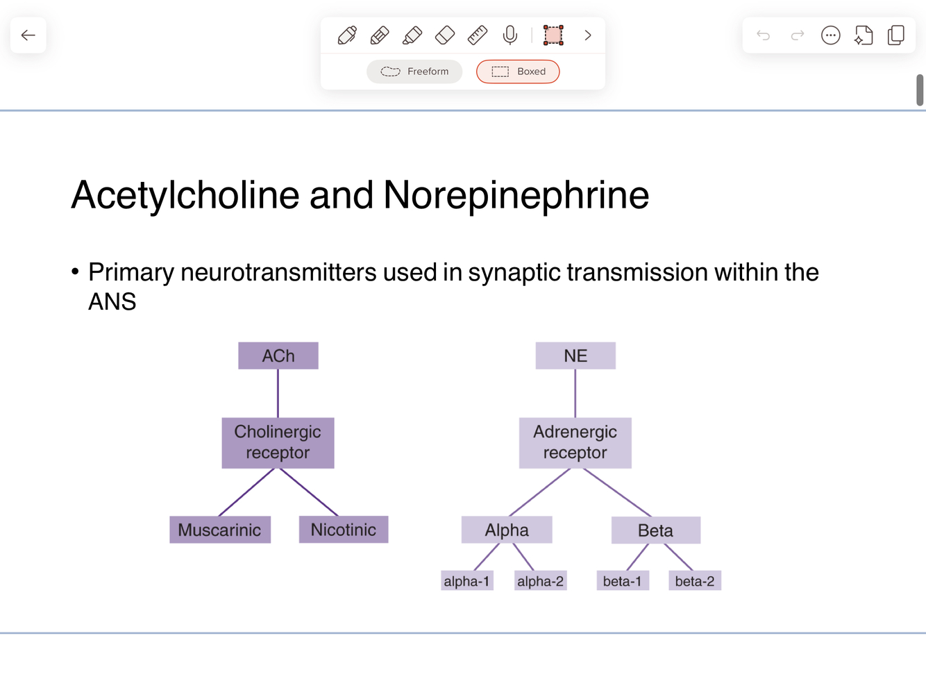 What are the two primary types of autonomic receptors?