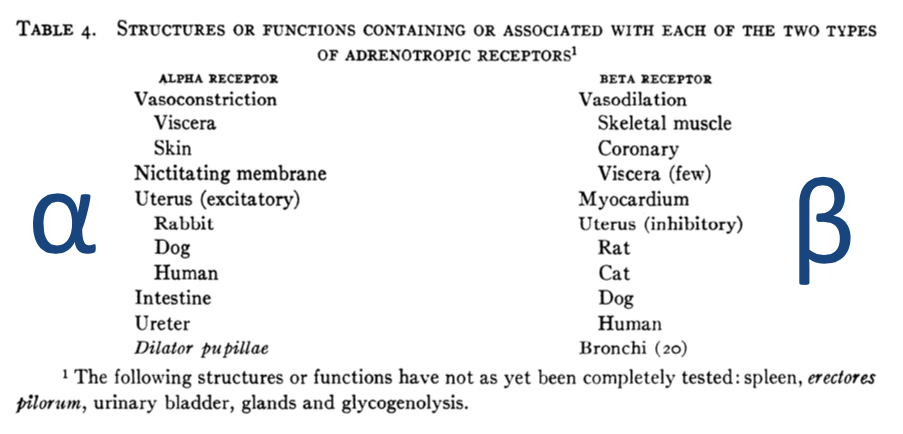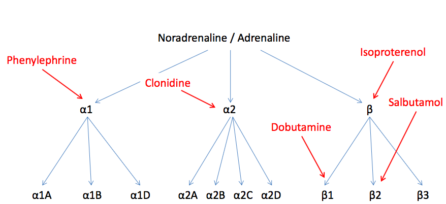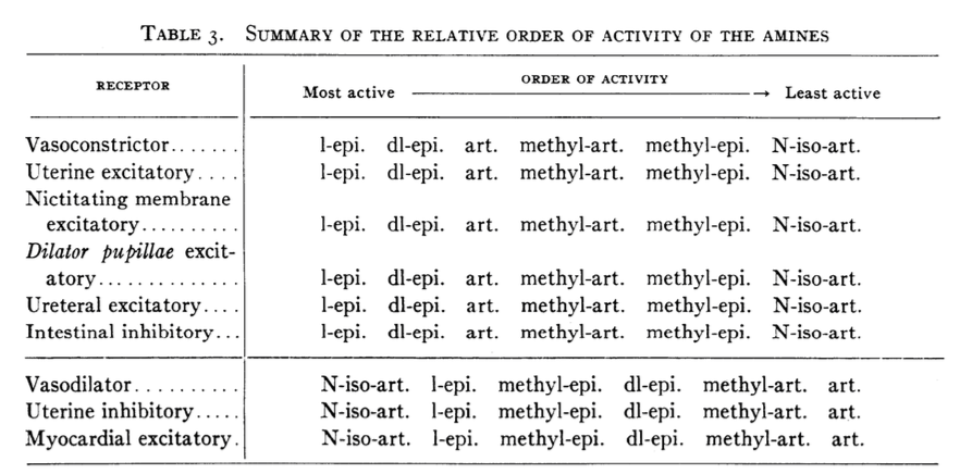 At aminerne, alt efter deres struktur kunne være aktive et sted, og ikke så aktive et andet sted. Altså: man kan give adrenalin-lignende medicin for fx. myocardielle excitatoriske effekter, uden det fx påvirker vasokontriktion, fordi de forskellige substanser kan rangeres efter deres potens afhængig af vævet. snak :-)
