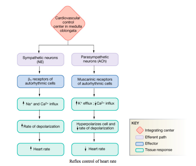 Beskriv hvordan det cardiovaskulære kontrolcenter i medulla oblongata påvirker HR (hhv. paraympatiskce og sympatisk efferente veje)