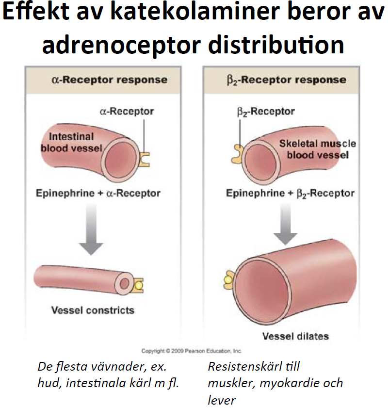 Hur påverkas effekten av katekolaminer av distributionen av adrenoreceptorer?