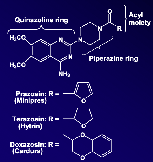 * Vary in half life (Prazosin 3 hrs, Terazosin 12 hrs, and Doxazosin 20 hrs)