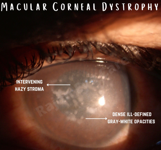 What are the clinical features of macular dystrophy?