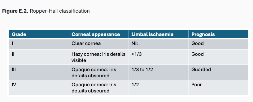 Roper Hall Classification for ocular surface injuries.