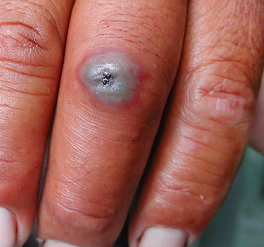 Spores are eaten, cause oral lesions, or through skin/lungs