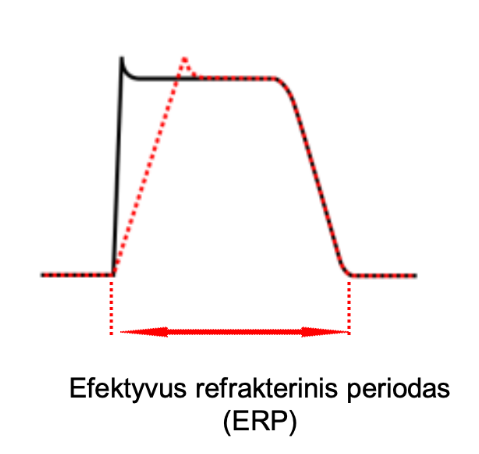Silpnina laidumą AV mazge –> AV mazgo lastelių ERP pailgeja