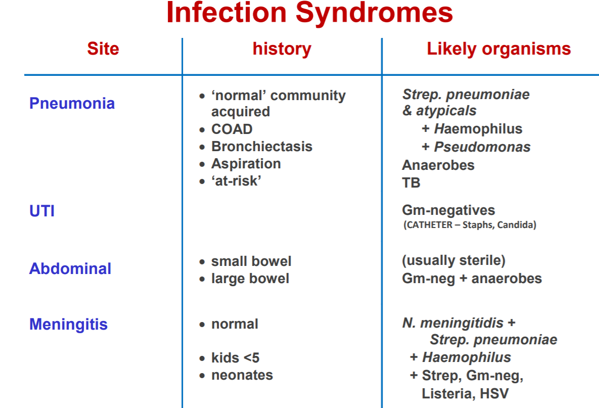 Neonates: group B Streptococcus, gram negatives, Listeria, HSV