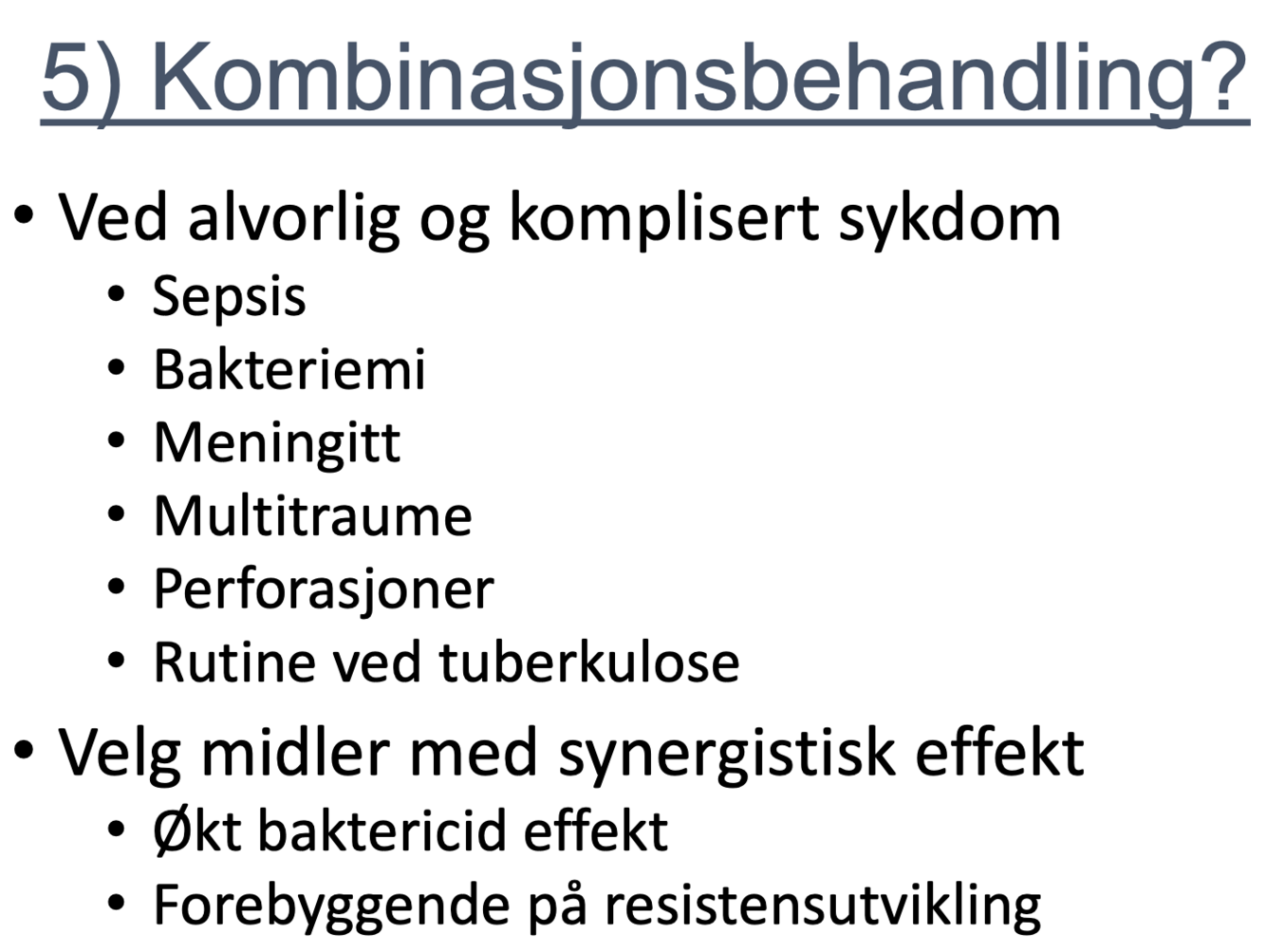 Dose/behandlingslengde er avhengig av infeksjonsfokus.