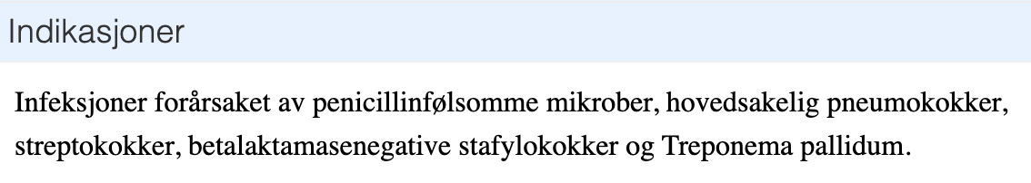 Ved hvilke indikasjoner bruker man “vanlige penicilliner”?