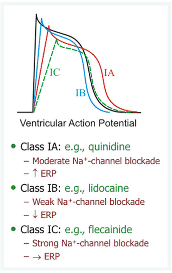 Class IC: decrease the rate of phase 0 depolarization (flecainide, propafenone)