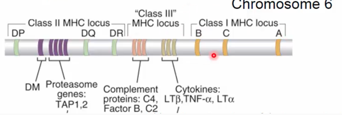 MHC 1 genes have B, C and A whereas MHC 2 have DP, DQ, DR