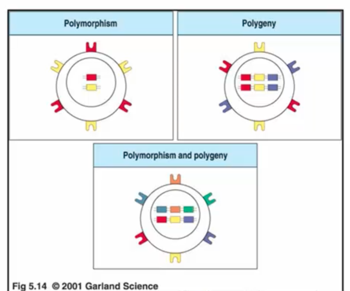 Theyre really polymorphic, this ensures some members of the population should be able to respond to some pathogens