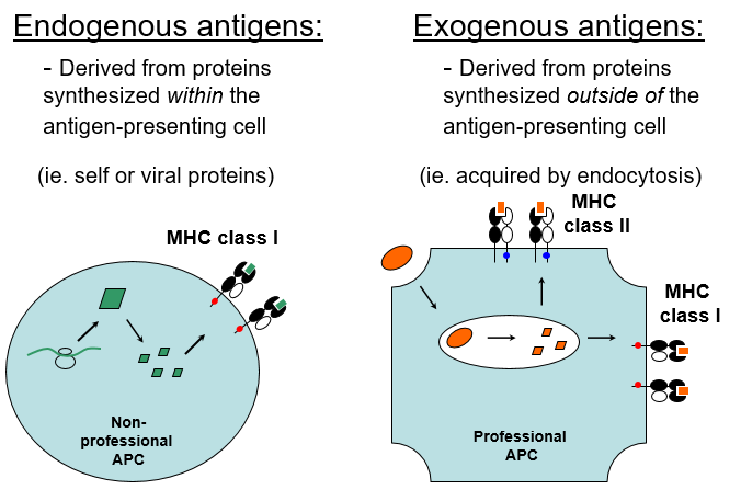 Ø Endogenous vs. exogenous antigens
