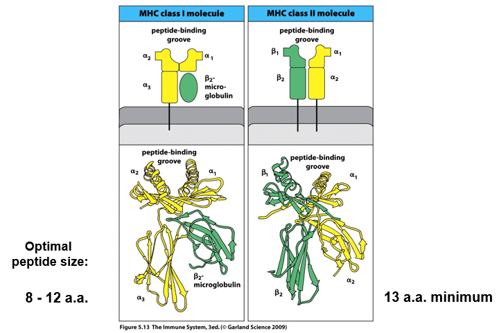 Optimal peptide sizes for MHC class I vs II?