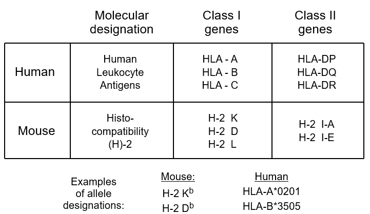 Ø MHC class I vs. MHC class II