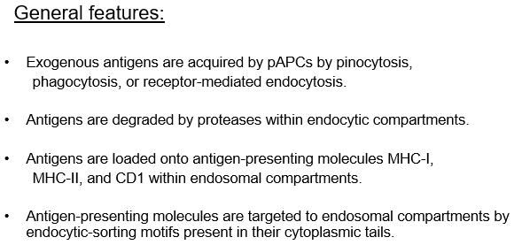 What are general features of exogenous Ag presentation by professional APCs?