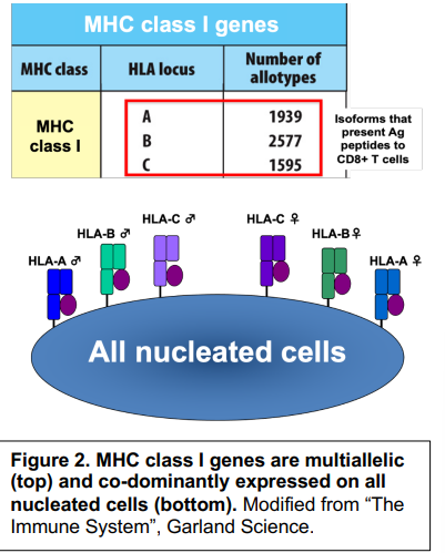 Up to six different MHC class I isoforms can be expressed on a single cell