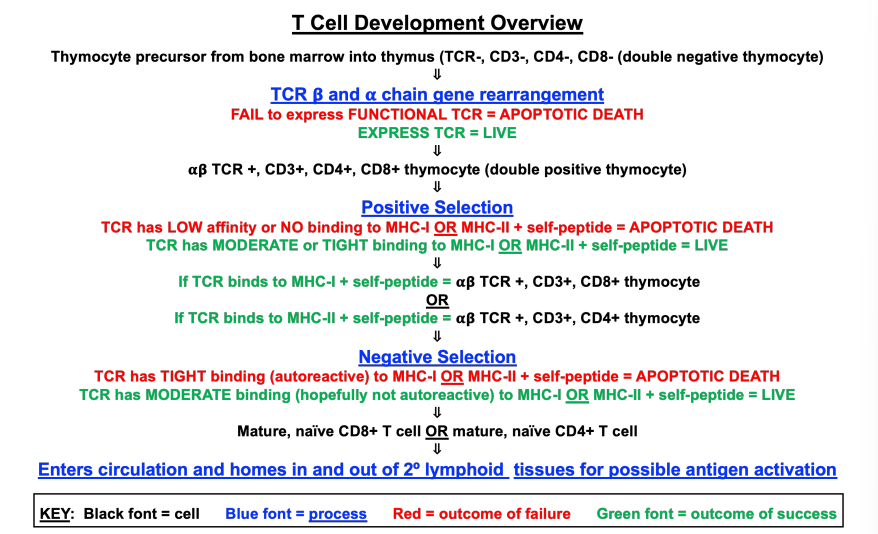 Double-positive thymocytes that have moderate-strong binding affinity to either MHC class I or MHC class II and self-antigen peptides presented on thymic cortical epithelial cells will survive