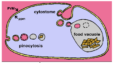 Uptake material from RBC; haemoglobin and protein component. Has a food vacuole
