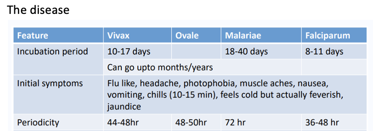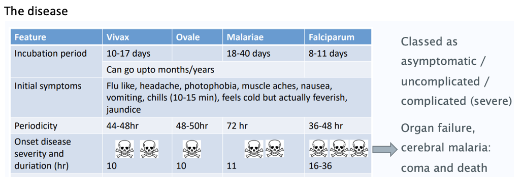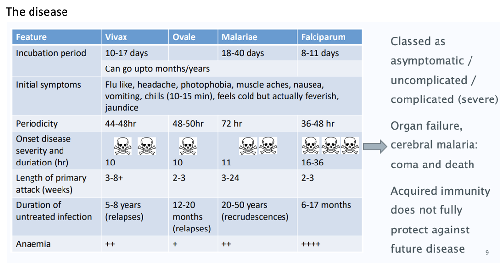 The disease and the 5 malarial parasites