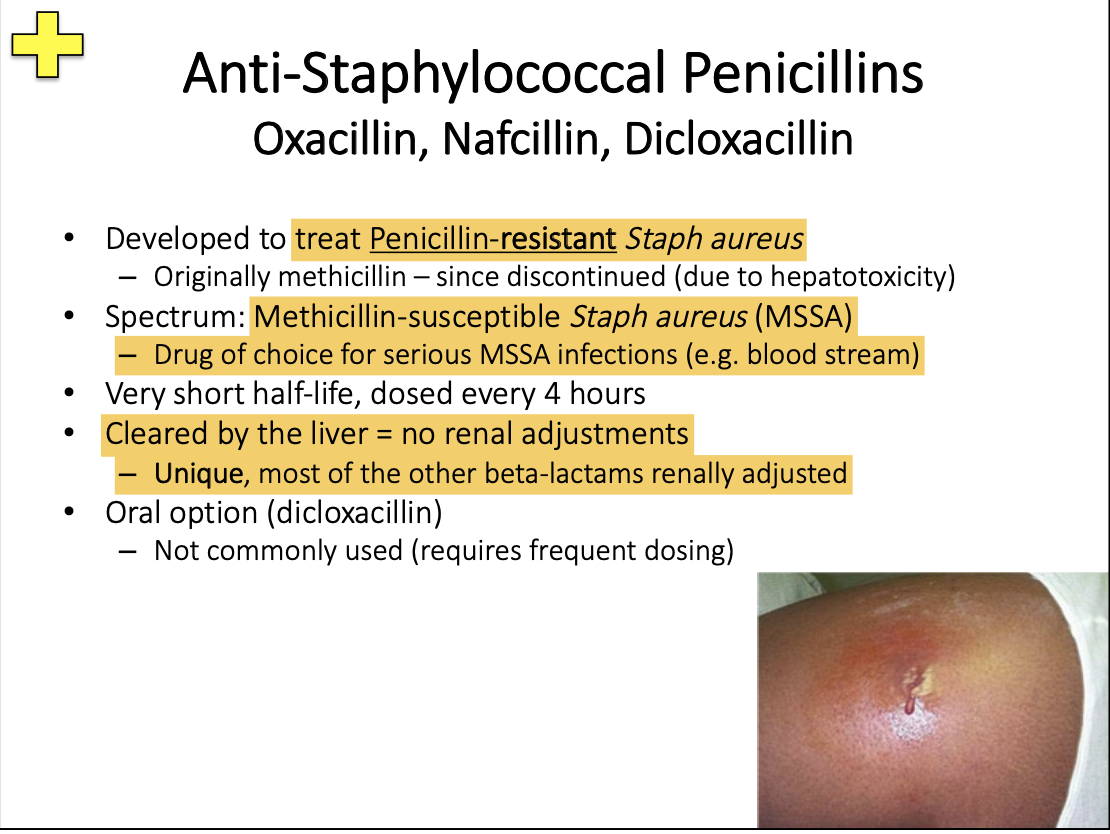 NAFCILLIN –> DRUG OF CHOICE FOR MSSA