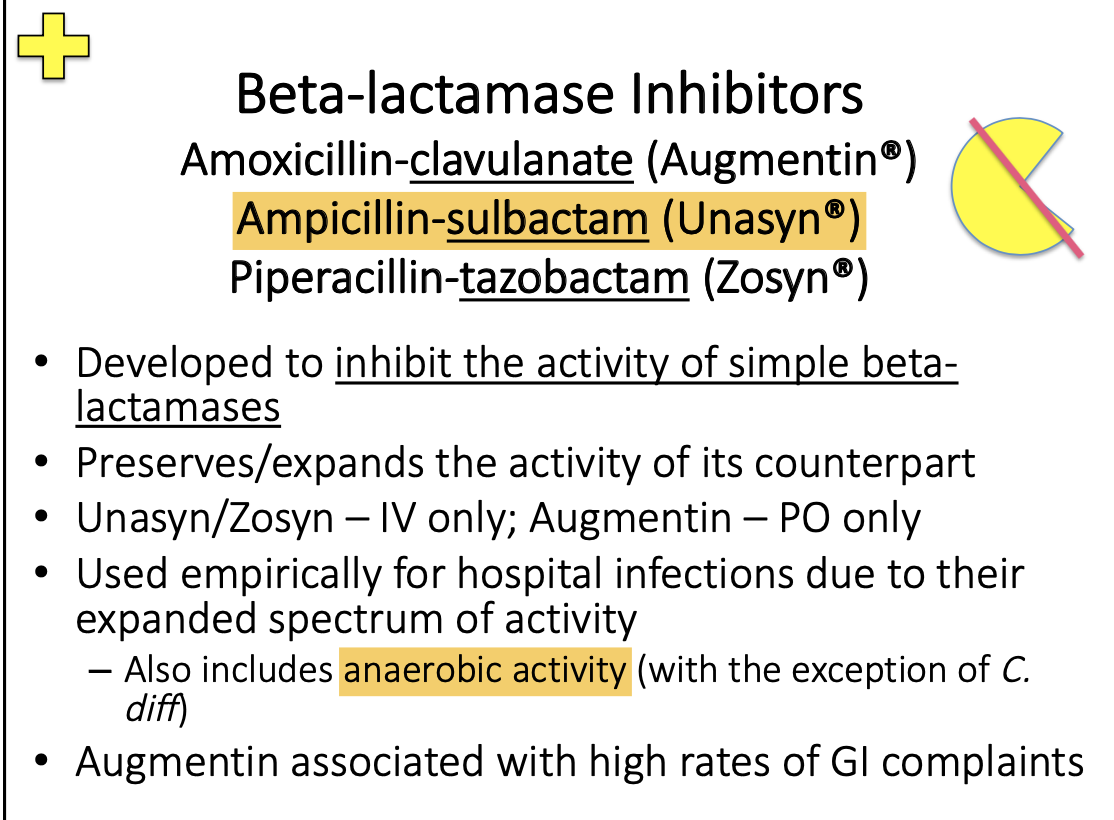 Amoxicillin-clavulanate (Augmentin®) Ampicillin-sulbactam (Unasyn®)