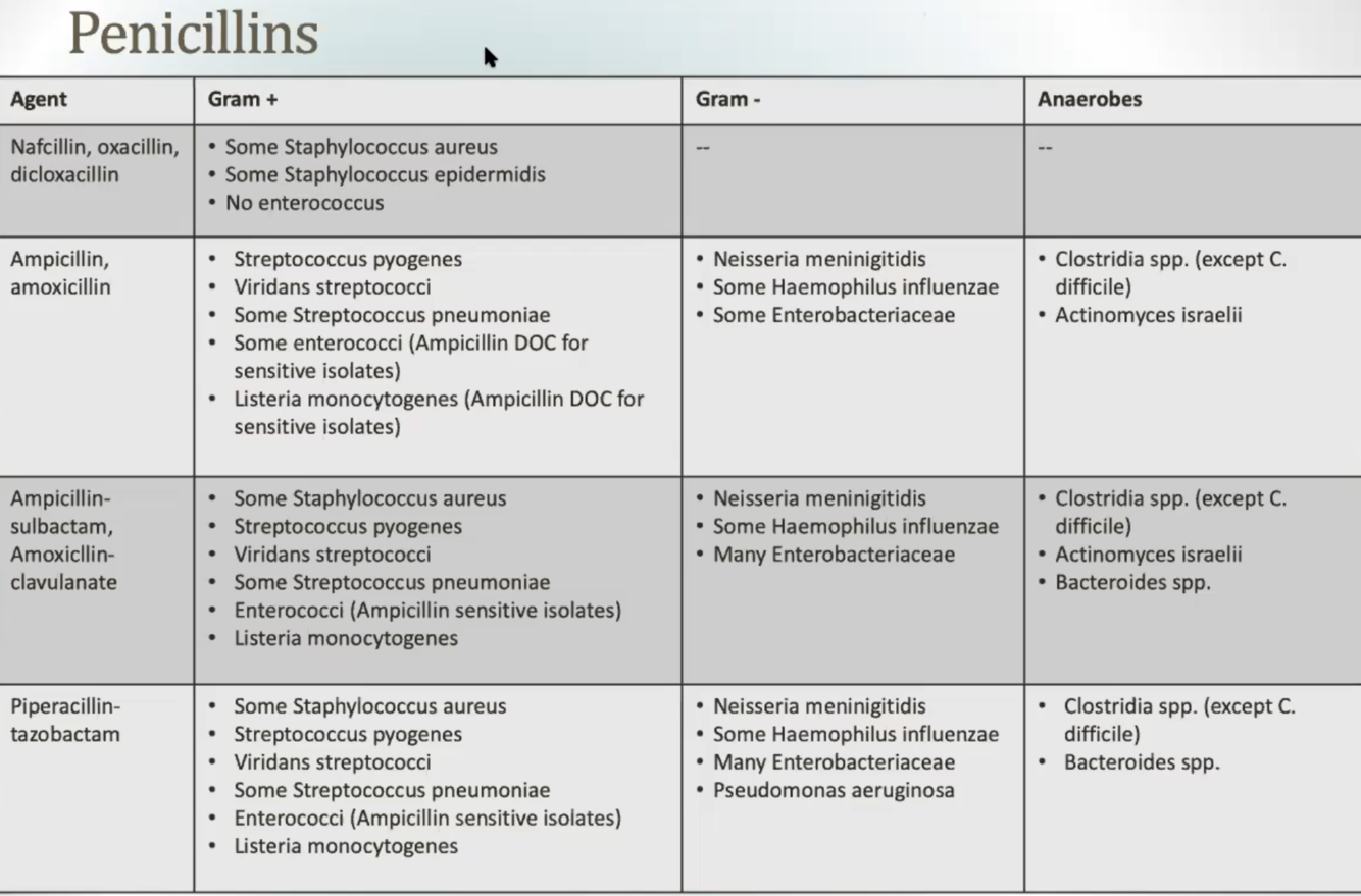 CLINICAL: Having Nafcillin as an intraop atbx for a GI procedure is not enough because it does not have an enterococcus coverage.