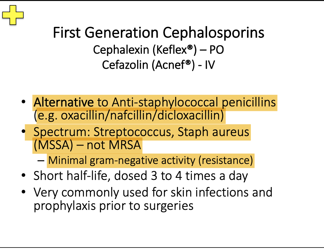 Cefazolin IV– in the OR we use this gram + skin flora, MSSA