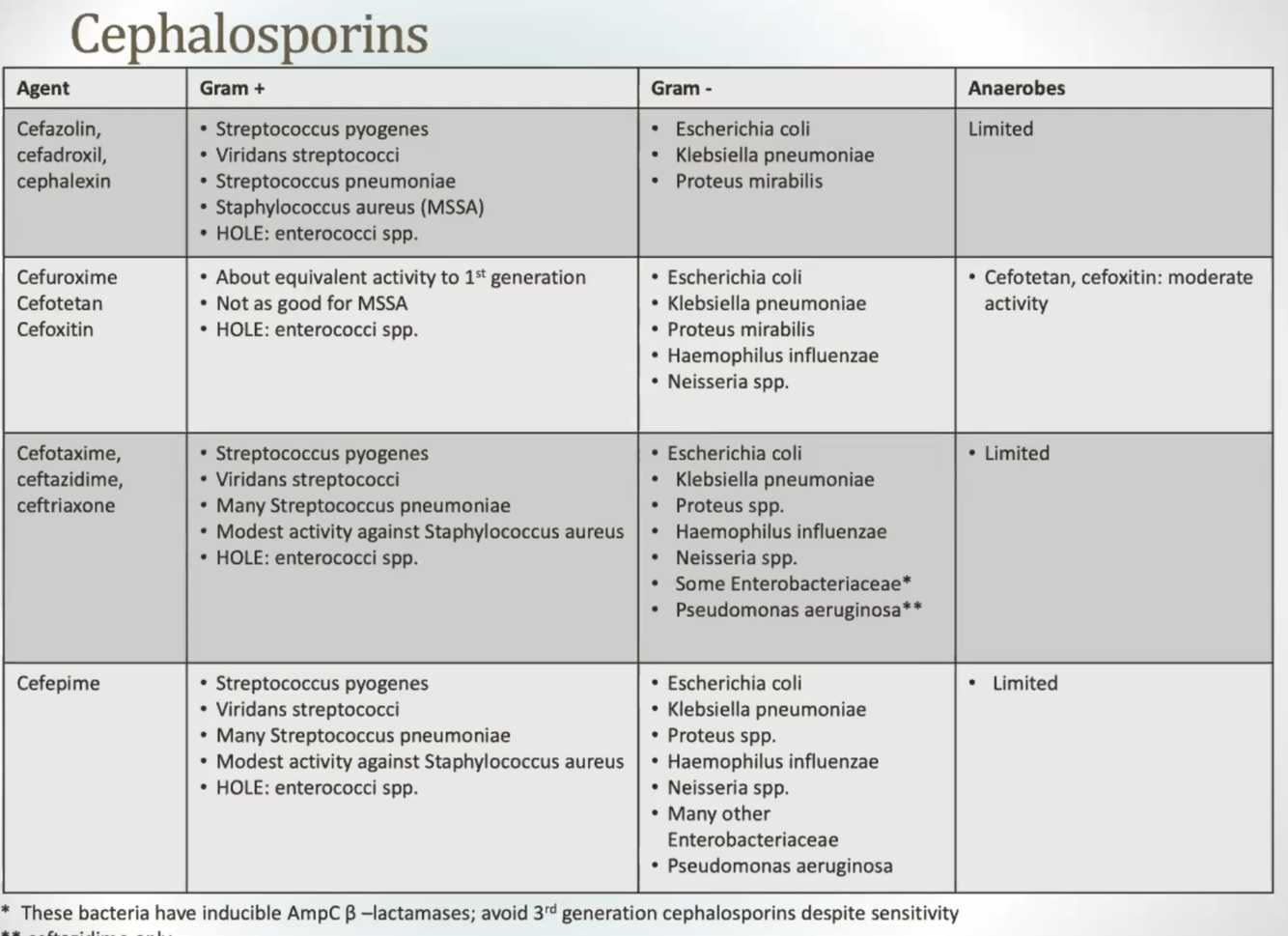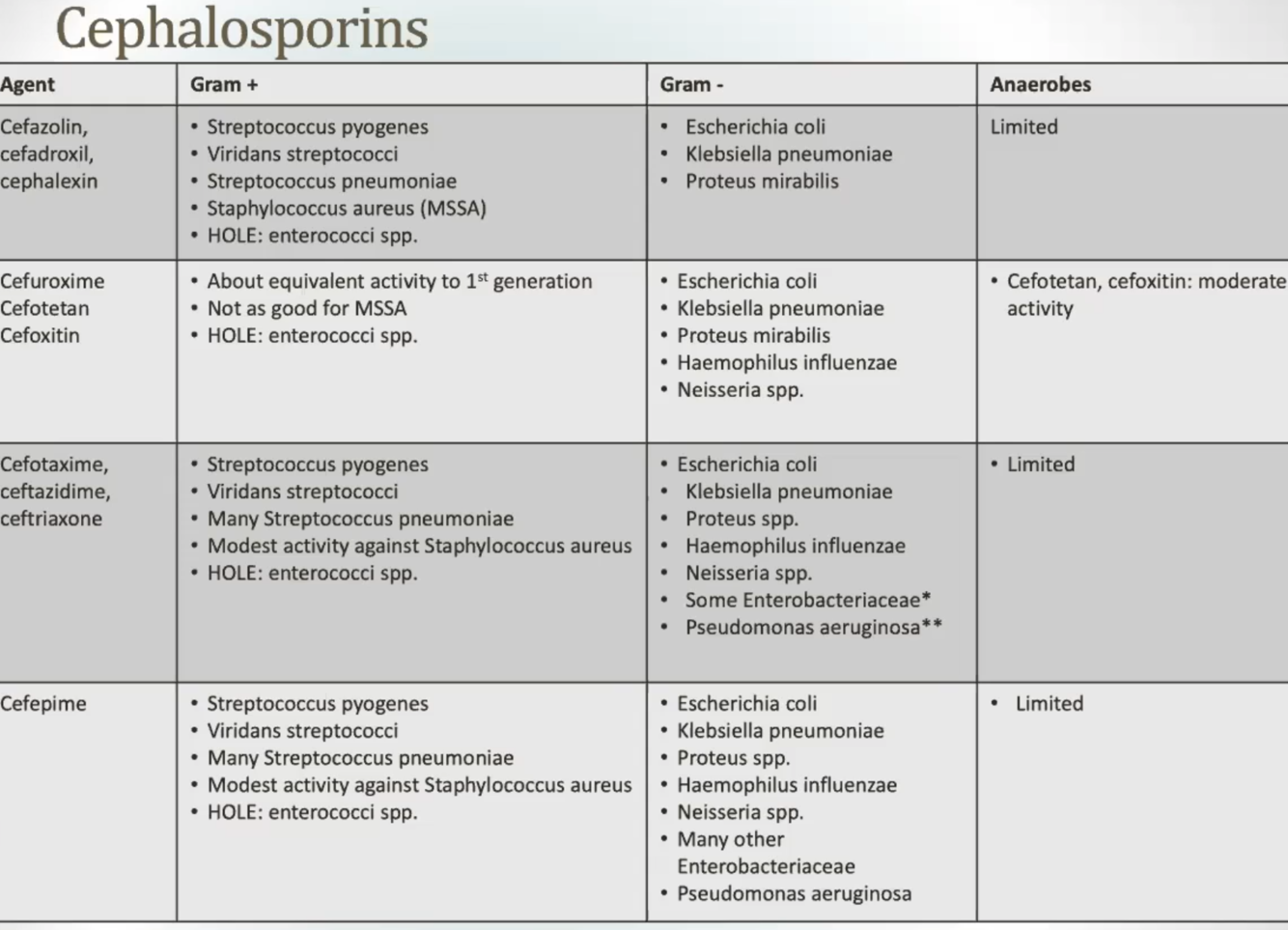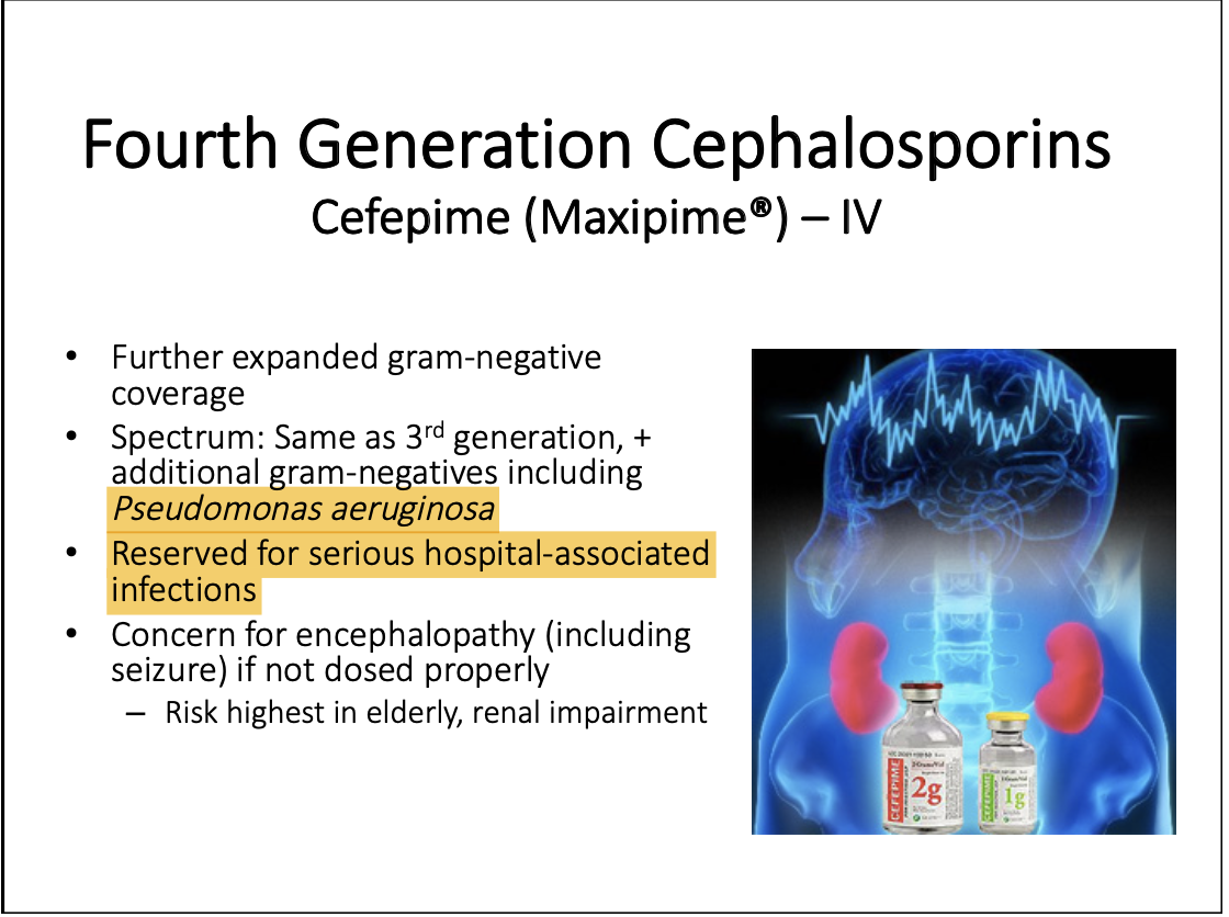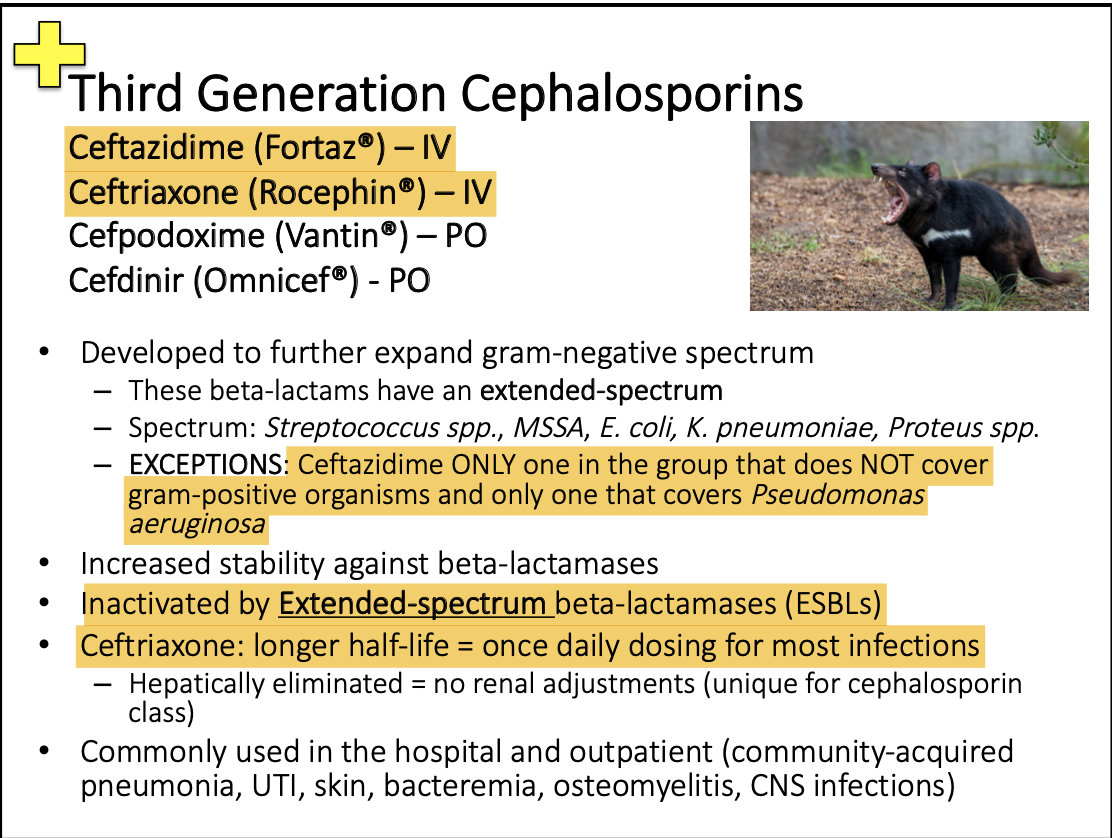 Ceftazidime (Fortaz®) – IV Ceftriaxone (Rocephin®) – IV Cefpodoxime (Vantin®) – PO Cefdinir (Omnicef®) - PO