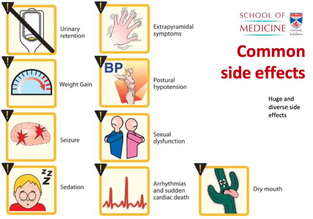 First Generation (FGA) or ‘Classical’ Antipsychotics are considered to be Dirty drugs as they don’t just bind to 1 receptor, bind to many other receptors