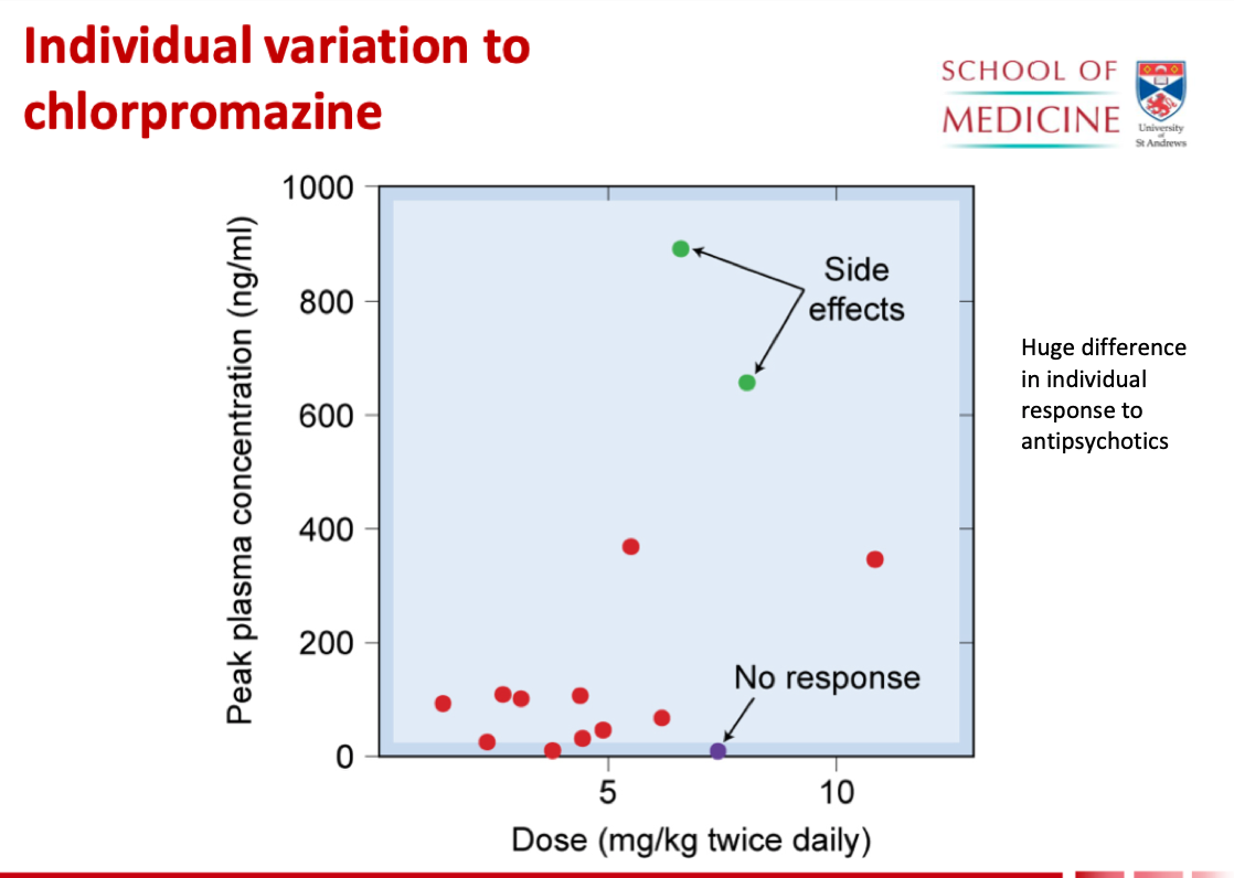 Huge difference in individual response to antipsychotics, may have to adjust dose