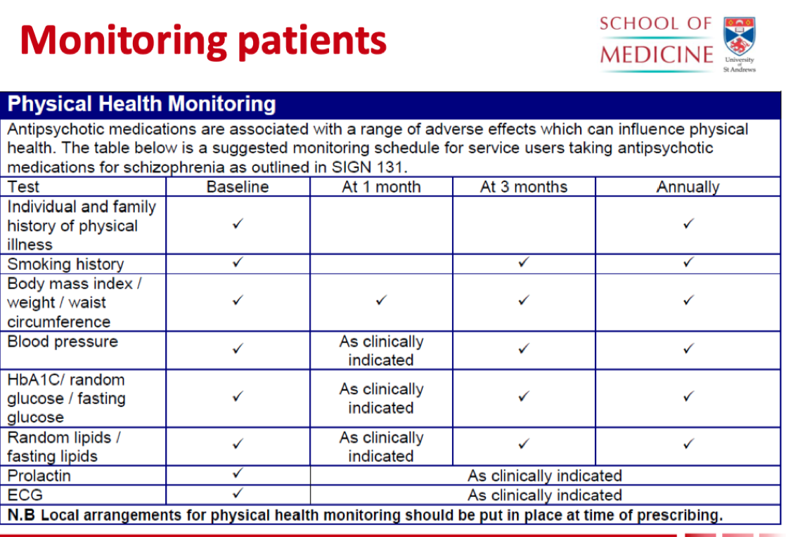 MUST monitor and look at patient WBC count, regular visits to GP to prevent Leucopoenia, mortality rates are high when patients left for to long, hence important of monitoring