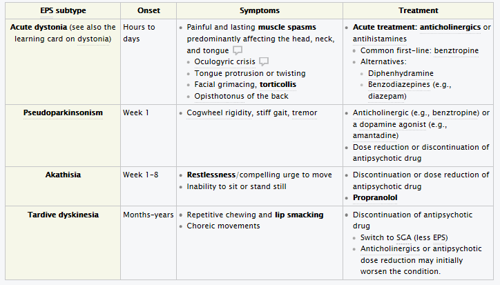What are examples of extrapyramidal side effects seen with first generation antipsychotic use?