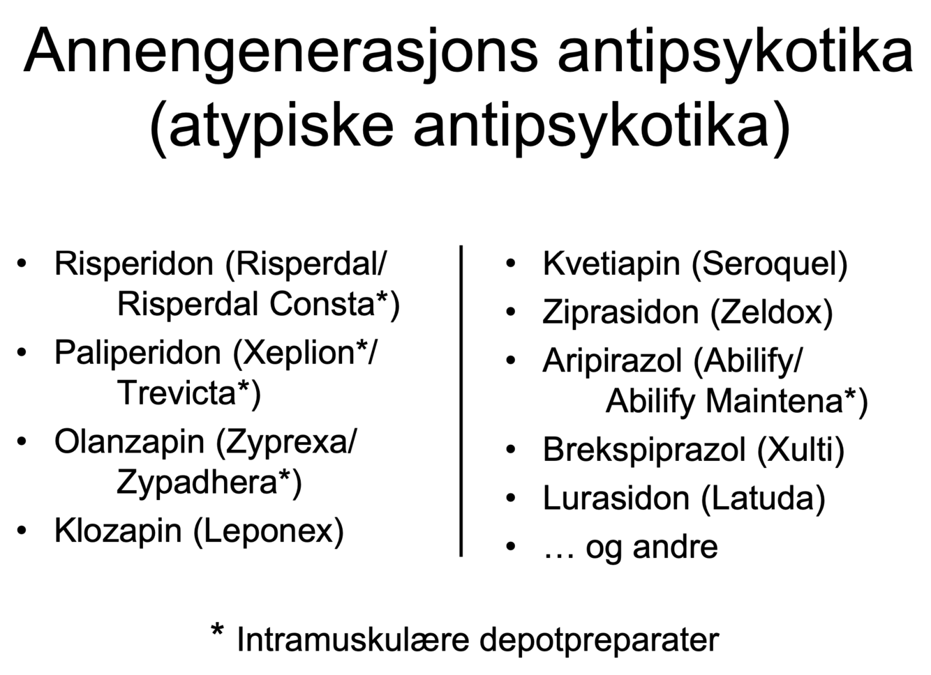 Hvilke preparater er annengenrasjons antipsykotika (SGA)?