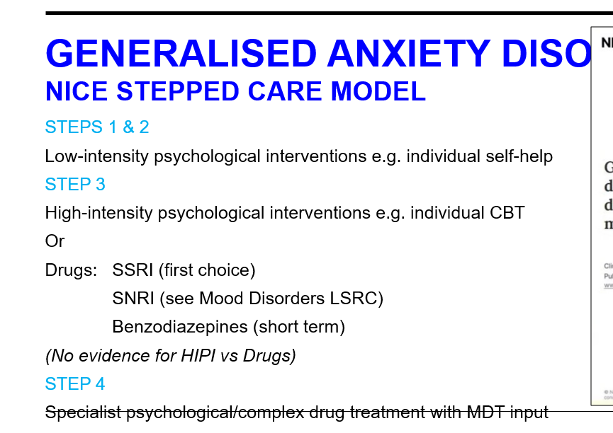 Q: In GAD, where do benzodiazepines sit in stepped care?