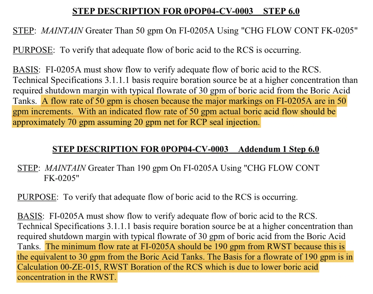 50 gpm is chosen b/c 30 gpm is required by tech specs and 20 gpm is for seals