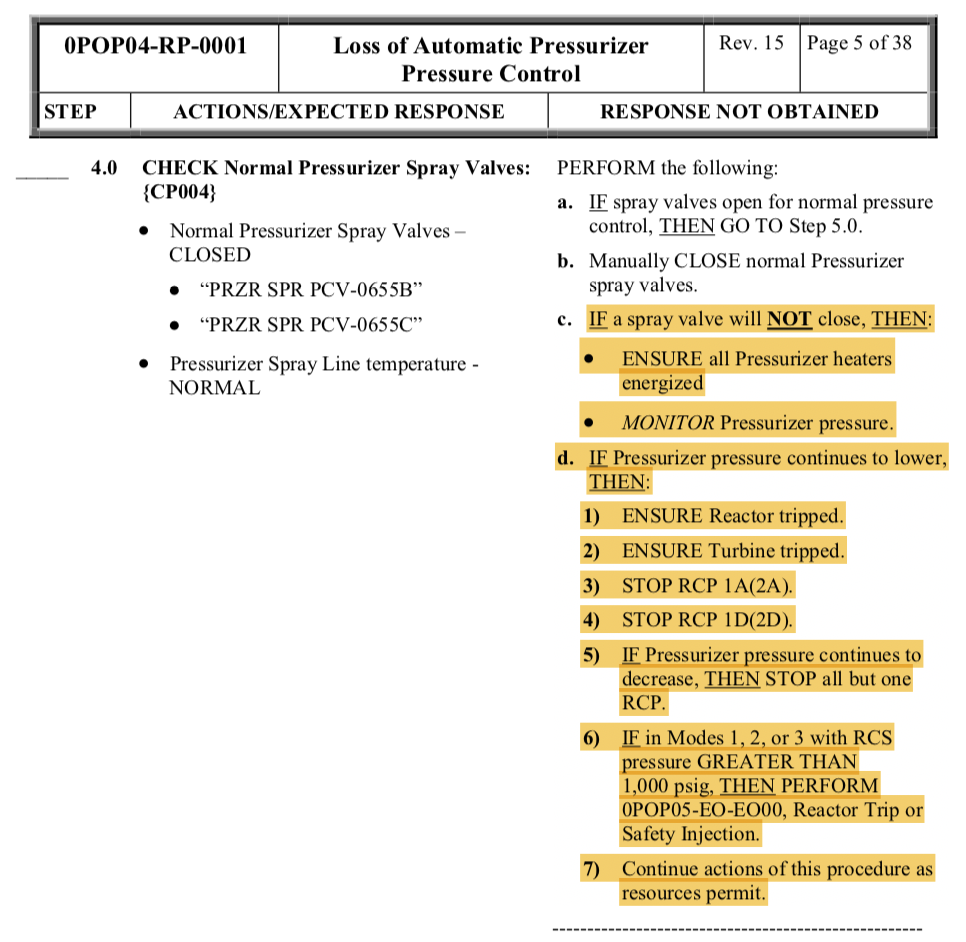 Monitor PZR pressure