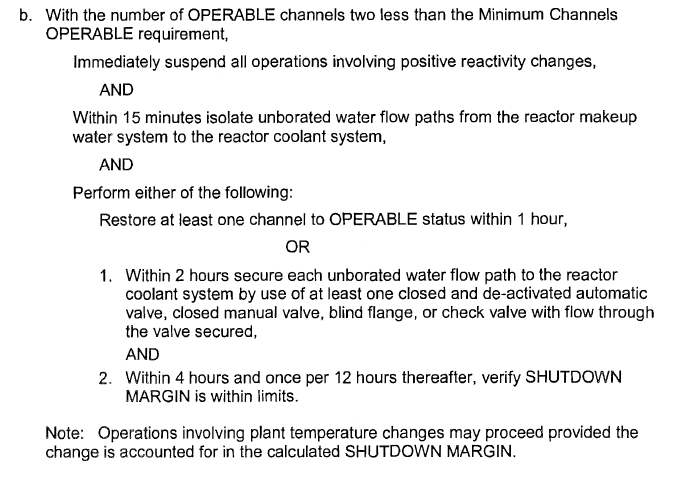 Restore 1 channel to OPERABLE [1 hr]