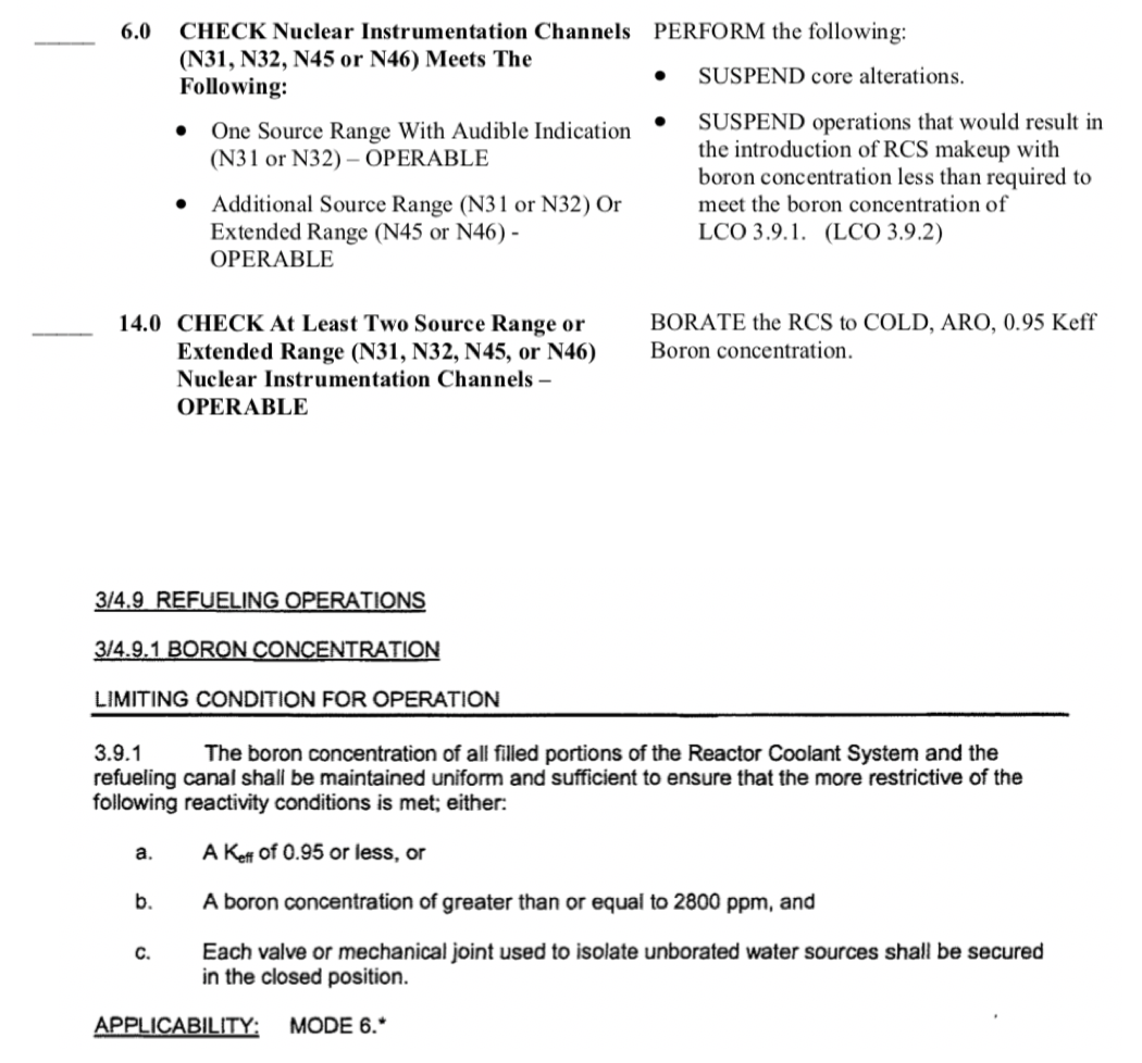 Suspend Operations that would dilute RCS < LCO 3.9.1