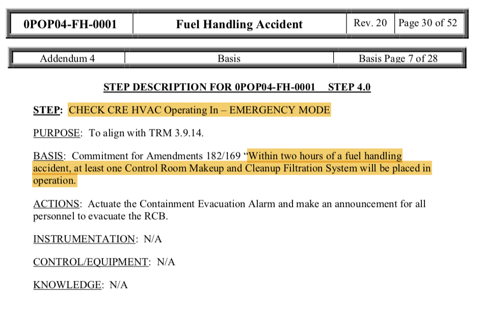 After a fuel handling accident, how long does an operator have to place a train of CRE HVAC in emergency mode?