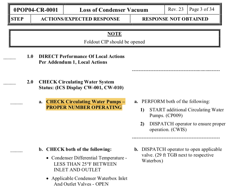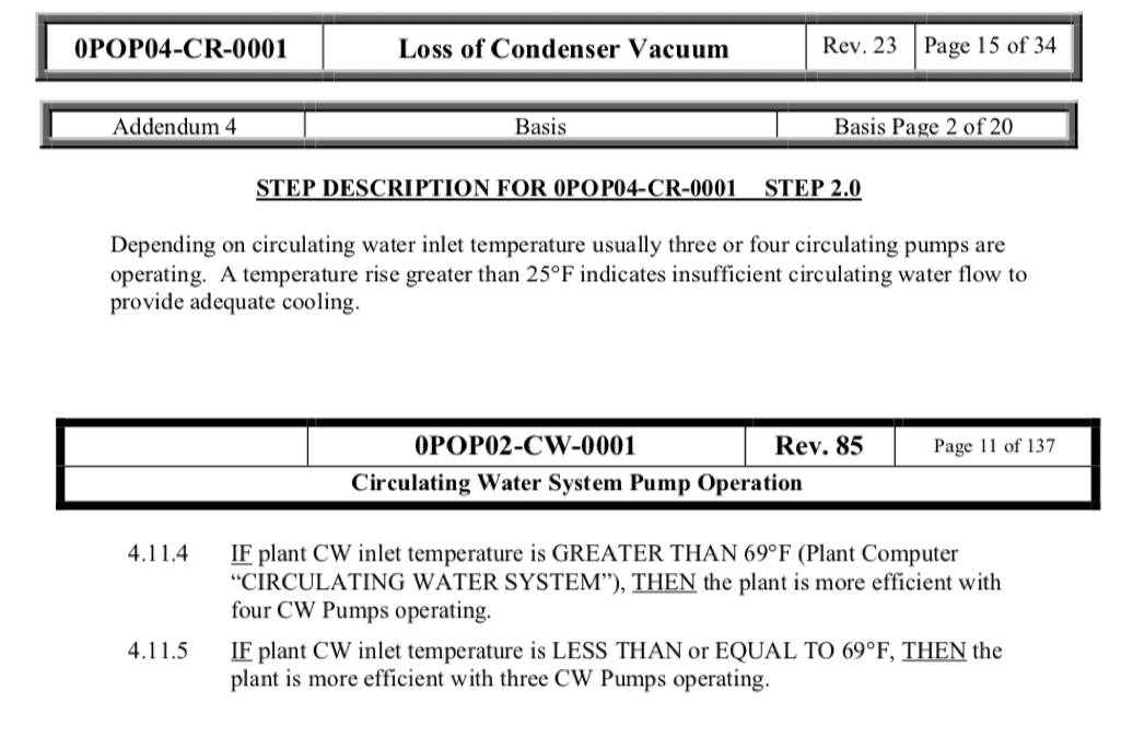 Step 2 in 0POP04-CR-0001 has you check the proper number of CW pumps are running. What determines the proper number of CW pumps?