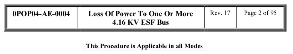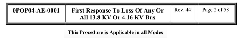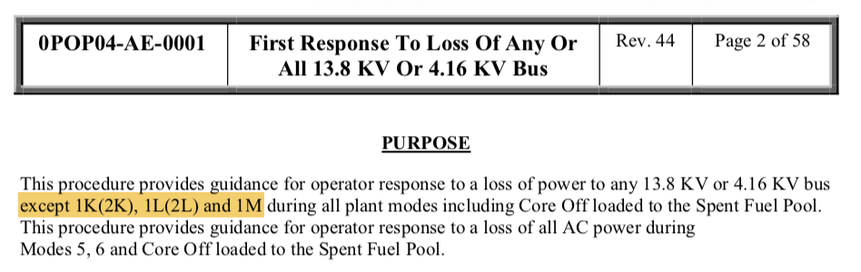 What 13.8kV / 4.16 kV busses does 0POP04-AE-0001 NOT cover?