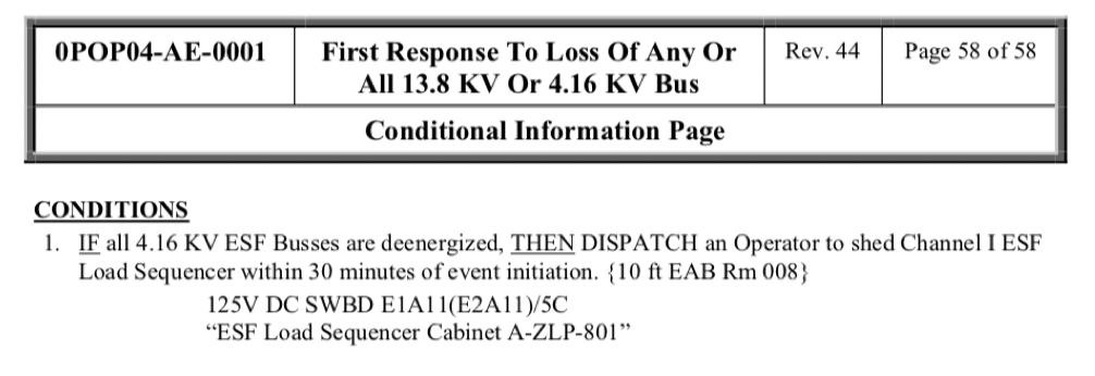 If power is lost to all ESF busses, then an operator must be sent to shed the Channel I sequencer. How long does the operator have to perform this action?