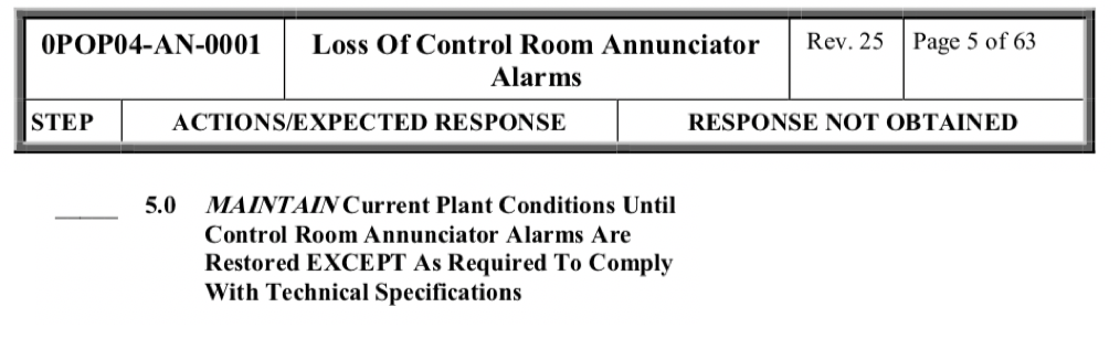 What will the operator do, with regards to Rx Power, during a loss of all control room annunciators?