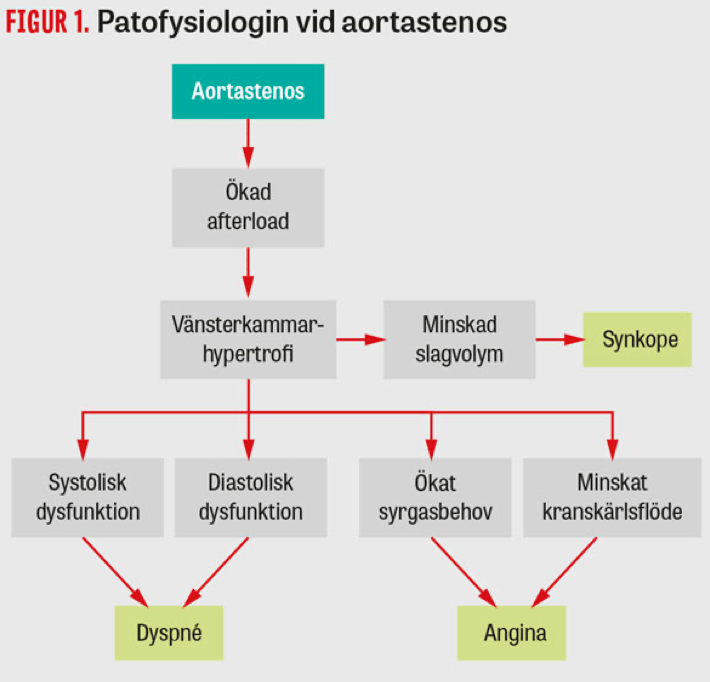 Synkope – för att hjärtat klarar inte av att upprätthålla tillräckligt högt cerebralt blodflöde vid ansträngning på grund av stenosen.