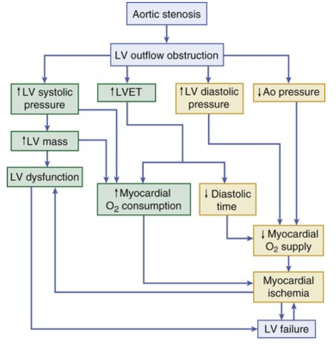2 | Även så gör stenosen att klaffen öppnar sig långsamt è systolisk går långsammare è högre syrekonsumtion och minskad diastole è hjärtat kan inte få syre