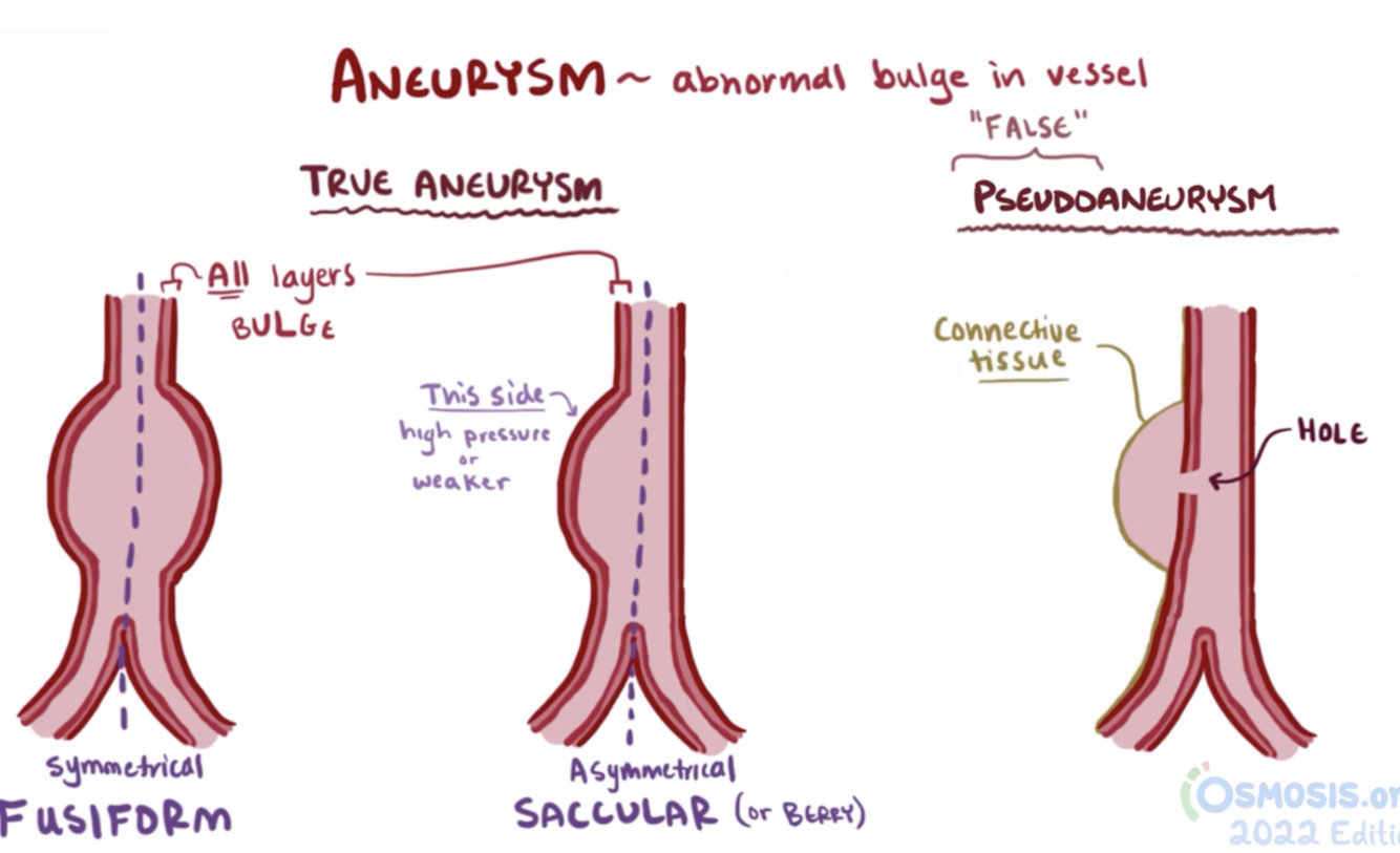 There are 2 main types of aneurysm; true and pseudoaneurysm. In which of these are all 3 layers of the artery affected?